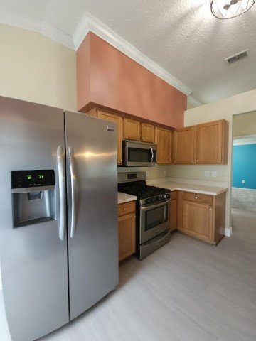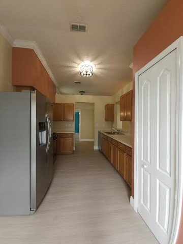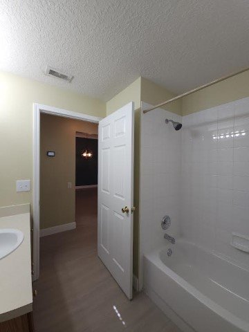Four bedroom, two bathroom home in Oakstead. Within the gated section of Keswick, you will find this gem of a home. Fabulously maintained and move-in ready. The eat-in kitchen features stainless appliances and laundry closet. Master bath has large walk-in closet, dual vanities, soaking tub with separate shower and private water closet. New flooring throughout living areas, kitchen and master bed and bath. The driving attraction is the fully fenced yard and enormous screened and paved patio. Enjoy entertaining friends and family with amazing custom lighting and 55-inch mounted TV on the patio. This home includes lawn service, lawn treatment and pest control. All residents will have access to the Oakstead community clubhouse a two minute walk from the home, pools, tennis, basketball and fitness room. This home is convenient to shopping, dining, entertainment, Interstate and Expressway.
