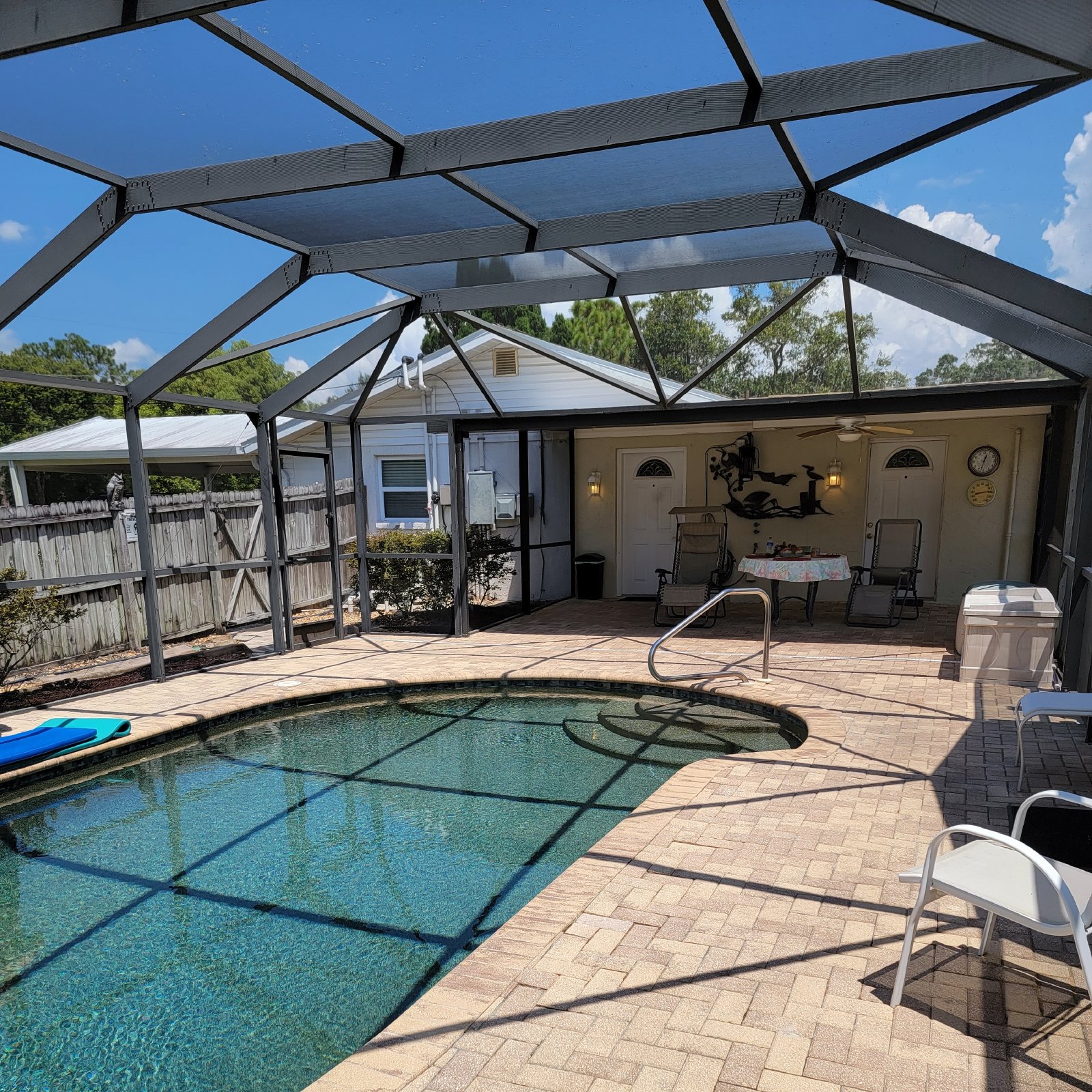 Welcome to Paradise! This gorgeous 3 bedroom, 3 bath home sits on a huge lot overlooking a great fishing pond. All UTILITIES ARE INCLUDED! Lawn care, pool care, electric and it's on a well so water is included also. Home has a split floor plan and is very open. Has a living area, a Florida room and another whole room for a den or office area. Sit on your screened deck and watch the sunset. Home does have other tenants living on the property but not in the main house. There is a SHARED private pool and laundry room. Cat or small dog ok.