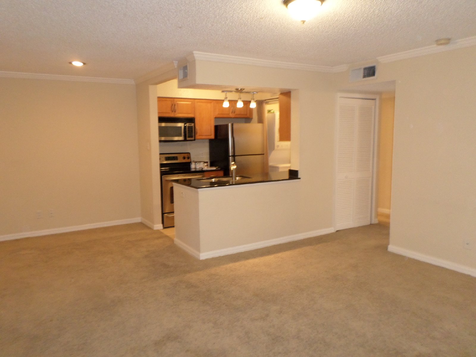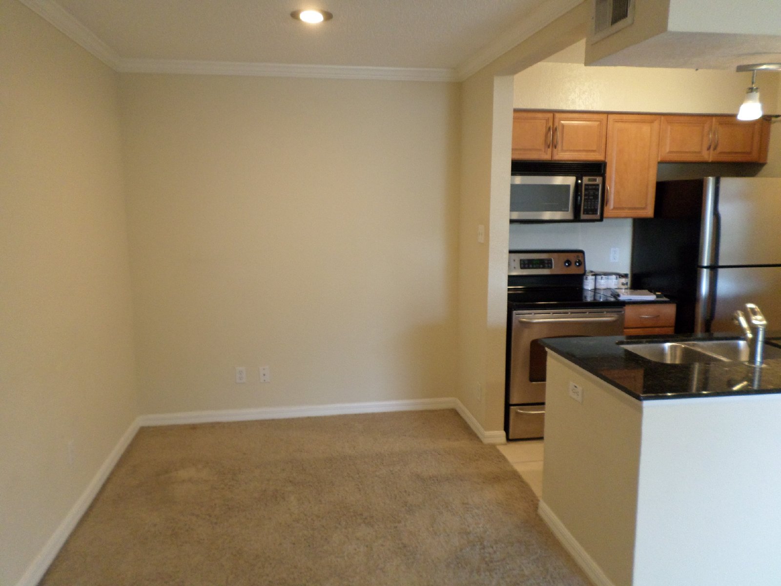 appliances and pretty granite counter tops, lots of cabinet space and separate dining space. Master suite with bath with granite counters.