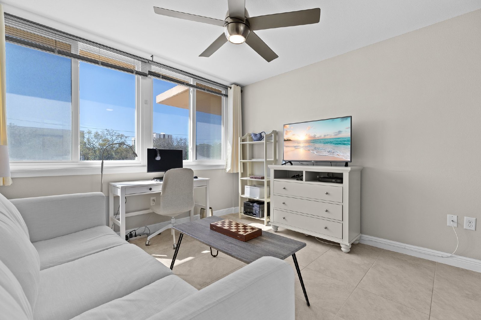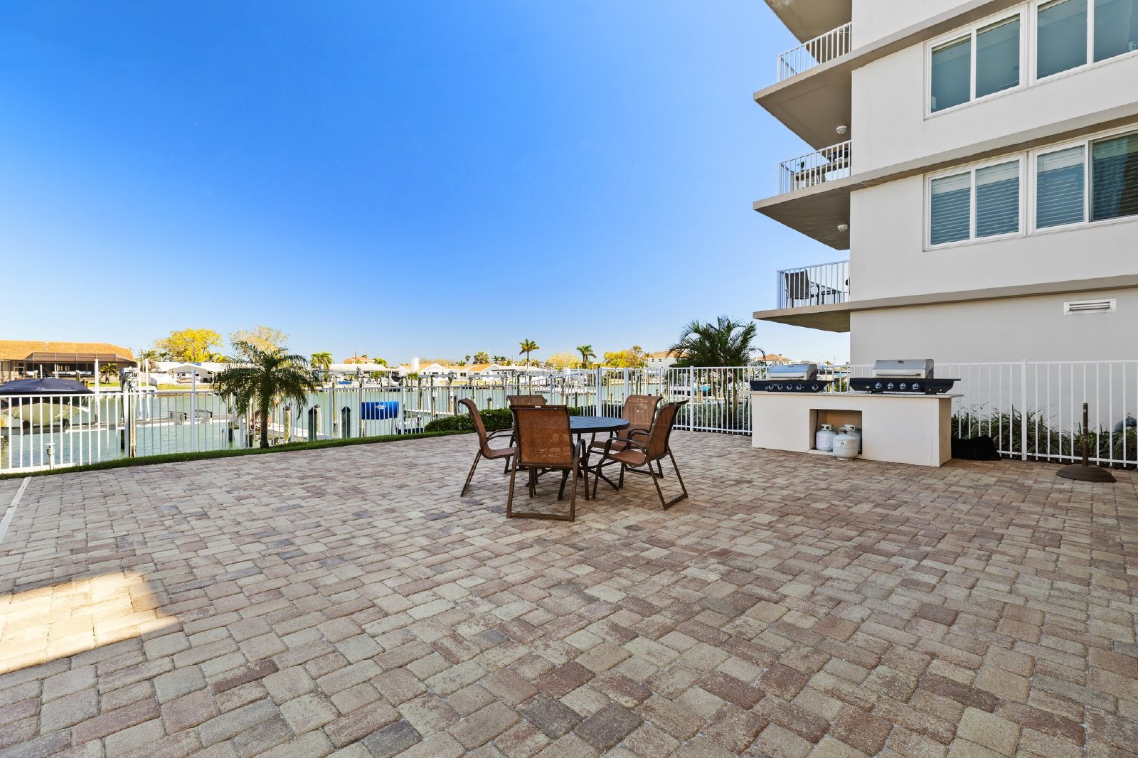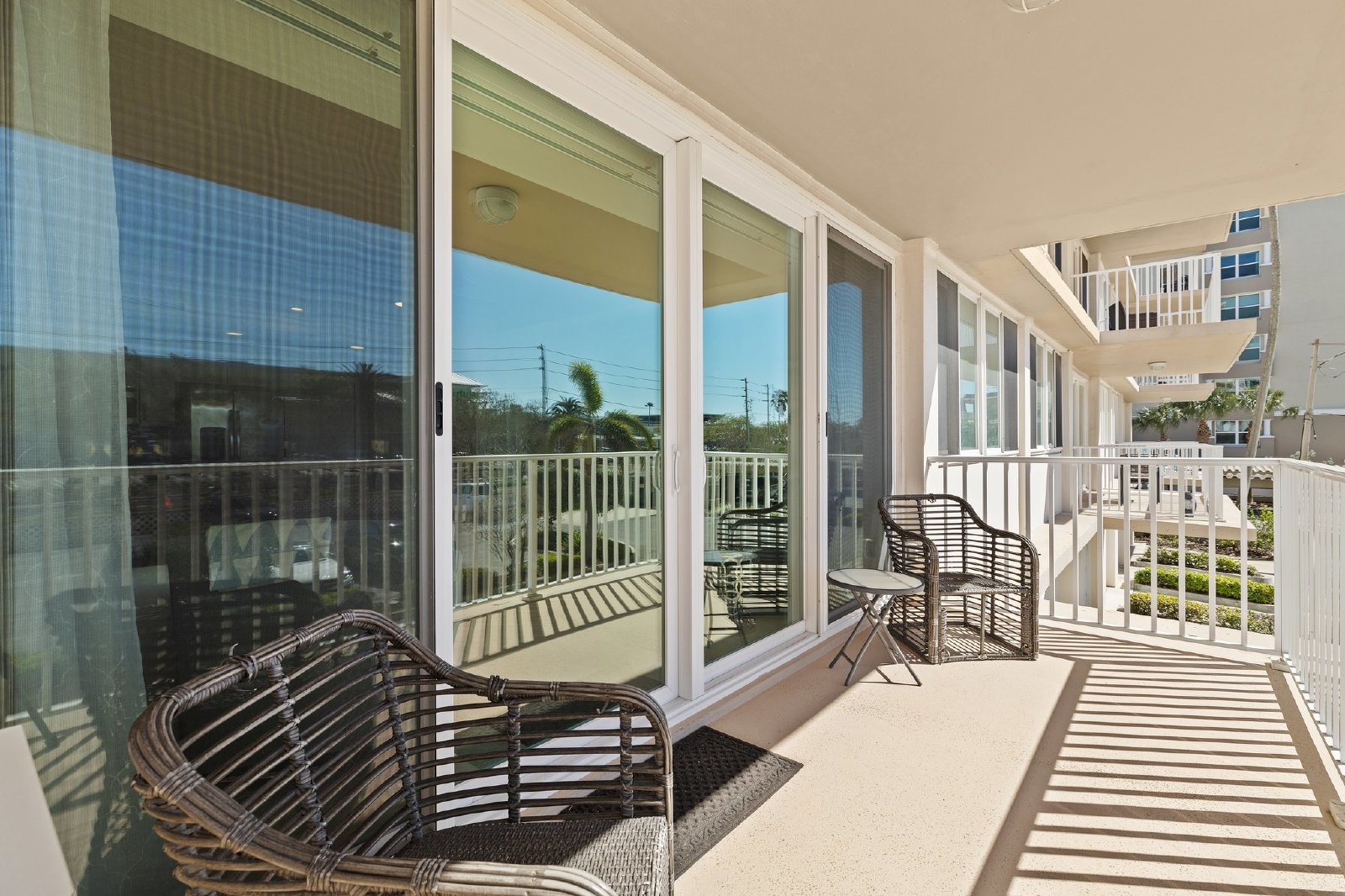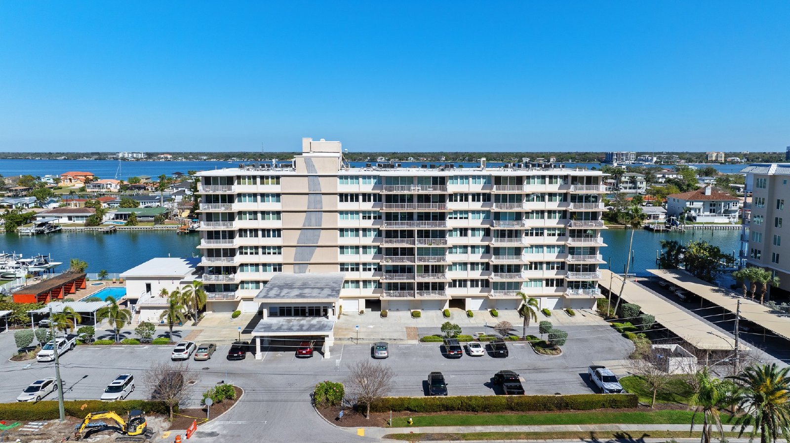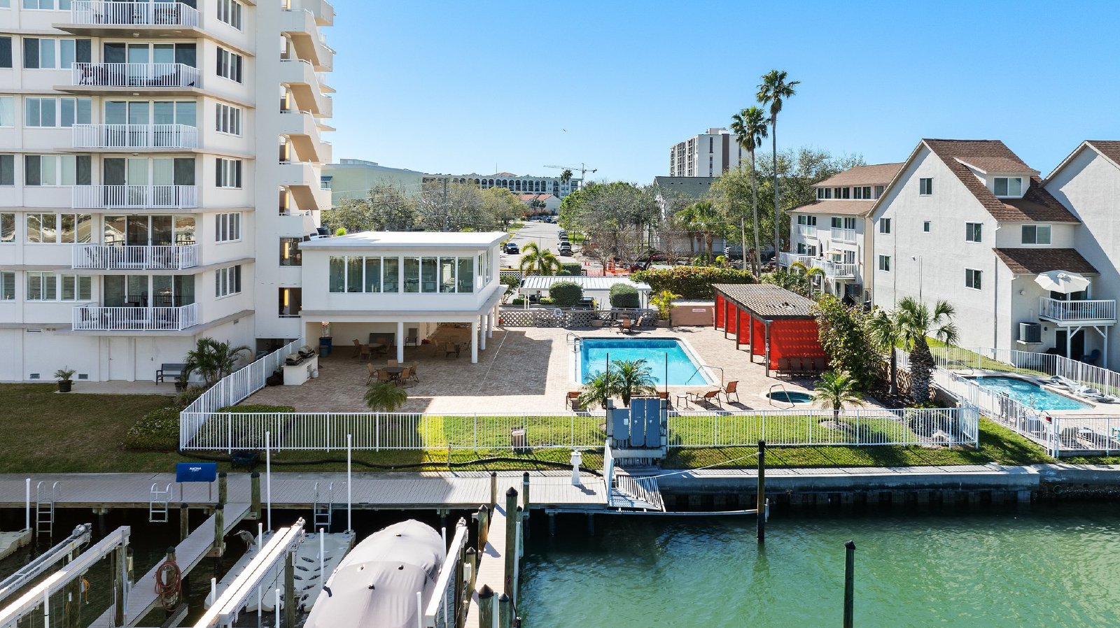 Luxurious fully furnished 2 bed 2 bath Clearwater Beach dream condo nestled on the 2nd level of Island Way Towers, a modern waterfront building right in the heart of Clearwater Beach. Enter the condo to a bright foyer with a coat closet and landing on the left side and a dazzling kitchen and dining room on the right side featuring glistening quartz countertops, solid wood cabinetry, quality stainless steel appliances and a sparkling tile backsplash. The living room opens to enormous sliding glass doors and a balcony beyond. Fantastic outdoor living thanks to an expansive pool deck lined with chaise loungers and multiple cabanas, a barbeque area and most importantly a large heated swimming pool and piping hot jetted spa, all with stunning waterfront views! Amazing Panoramic Intercoastal Water views from the community party great room situated just down the hall which includes a party kitchen, huge dining set and enormous living room with lots of seating and a large flat screen TV, perfect for entertaining large groups or just enjoy it yourself. Island Way Towers also offers a cozy front lobby and a nicely equipped community fitness room. Back to the condo details: The primary suite includes a plush bedchamber, full ensuite and of course a large walk-in closet. The 2nd bedroom has a built in closet and comes furnished with a hide-a-bed sofa for max flexibility. This beautifully appointed home comes furnished with the highest quality furniture and dcor, locally sourced and professionally curated. A storage cubby is assigned (#4) on the 2nd level. Assigned covered parking space #22 is included and plenty of extra parking for residents and guests. Convenient location steps away from fine dining and shopping, yet only a mile from the high energy sugar sand beaches and non-stop party hotel zone, perfect location for optimal Clearwater Beach living!