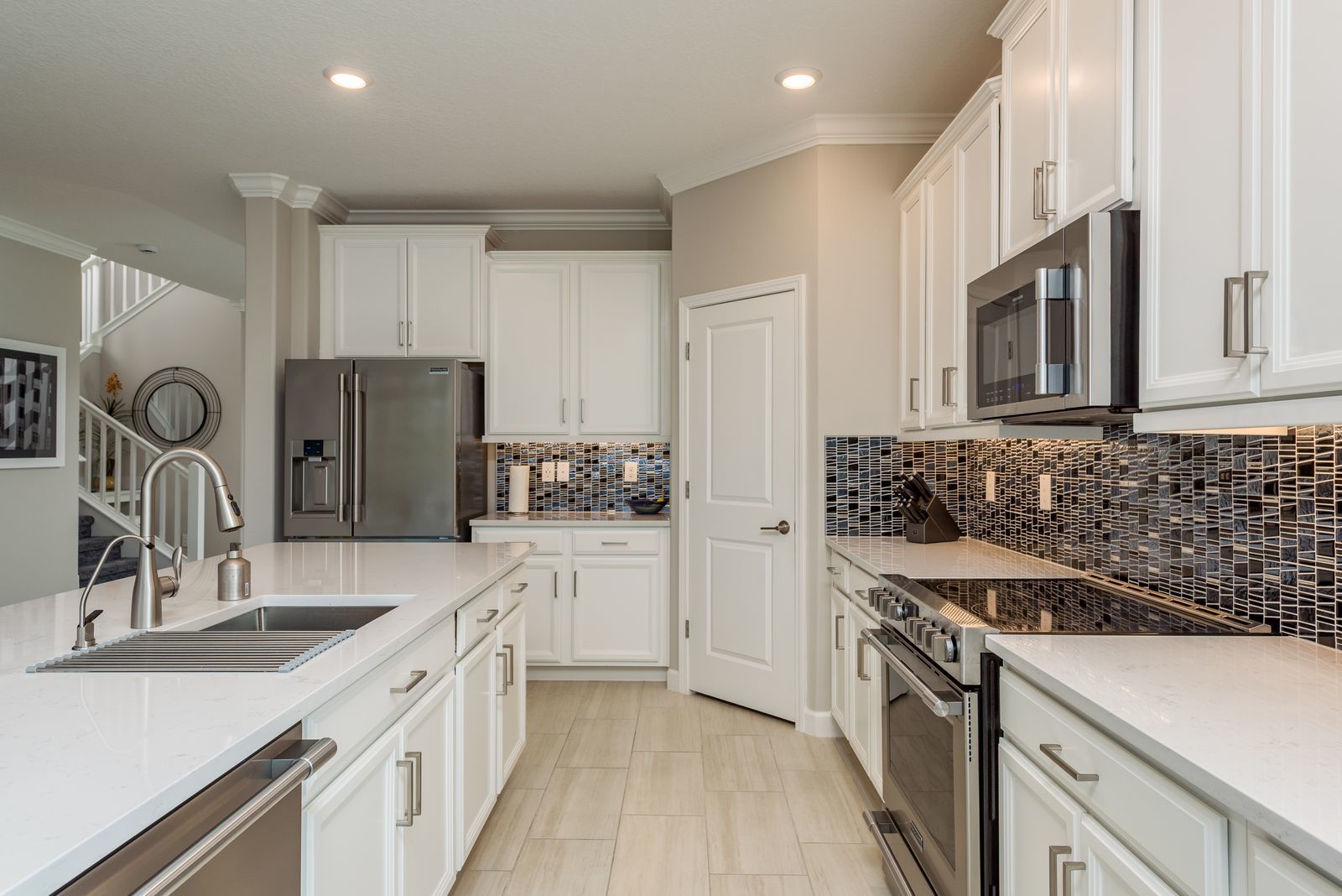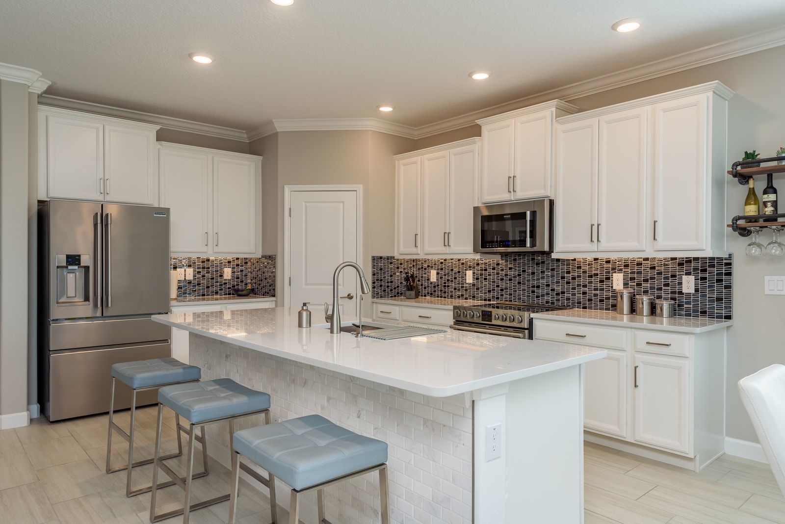 3 bedroom, 3 bath home sits on a premium lot with serene preserve and pond views in Medley at Angeline, a premier 55+ resort style community. With thoughtful upgrades, elegant finishes, and incredible attention to detail, this home is designed to impress. Step inside to an open concept living space filled with natural light. The first floor primary suite features a beautifully tiled shower and walk-in closet. The gourmet kitchen is a chef's dream, showcasing Premier Frigidaire appliances, a stylish tiled backsplash, and an oversized island perfect for entertaining. Upstairs, you'll find a generous loft, third bedroom, and full bath with a luxurious rainfall tiled, walk-in shower. Outdoor living shines here enjoy the extended, screened lanai with a partially covered seating area, custom waterfall HOT TUB, and privacy drapes. Whether sipping morning coffee or evening wine, this space is the perfect retreat.
